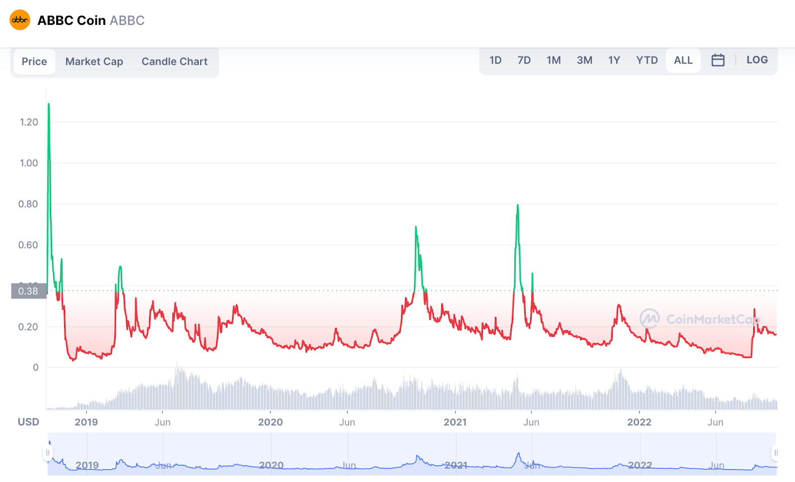 From the chart, the price of ABBC coin saw a decent run in 2018 to an all-time high of $2 before the current bear market impacted the price. ABBC is a good investment because of its use cases and would perform well in the market when the crypto market bounces back to its market capitalization.