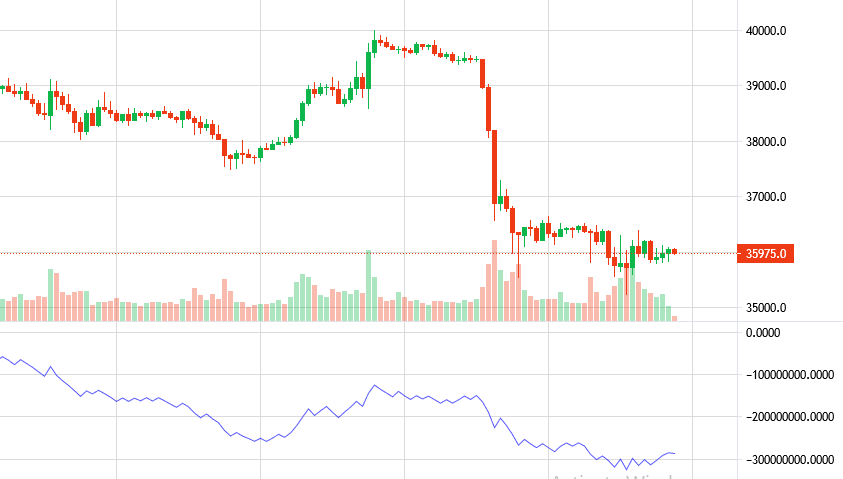From the image below, the dots flipped from below the candles at around $39,500 on the BTC chart to signal a trend reversal.