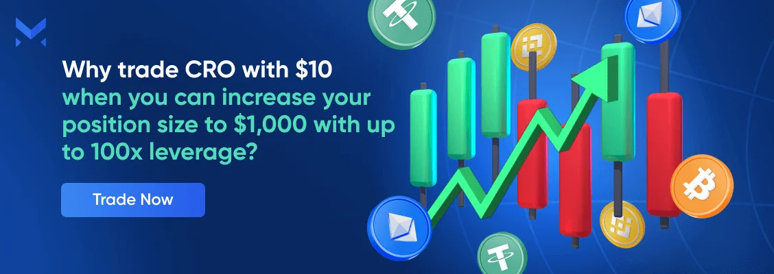 Margex technical analysts use diverse tools to help a trader make the right moves in crypto investment. Applying a technical indicator such as the SMA on CRO, we can make a Cronos coin prediction short-term and long-term.