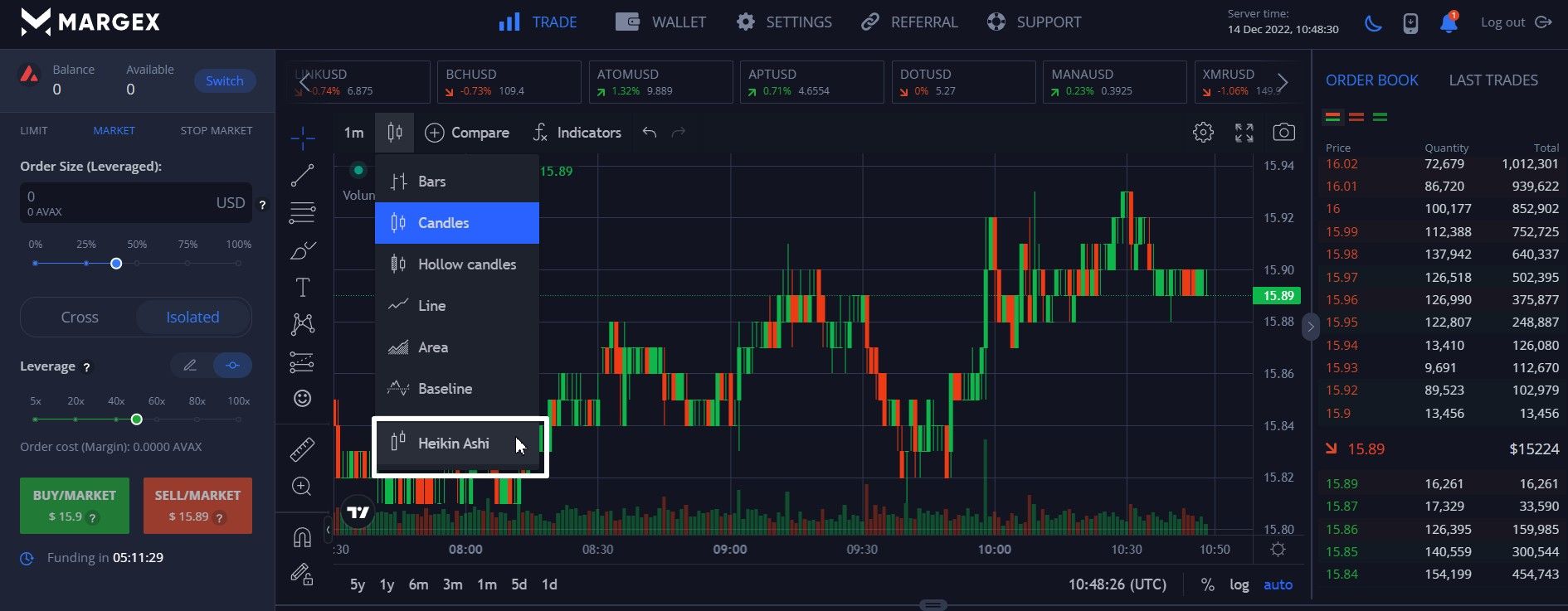 Applying A Technical Indicator With Heikin-Ashi On Margex Examples