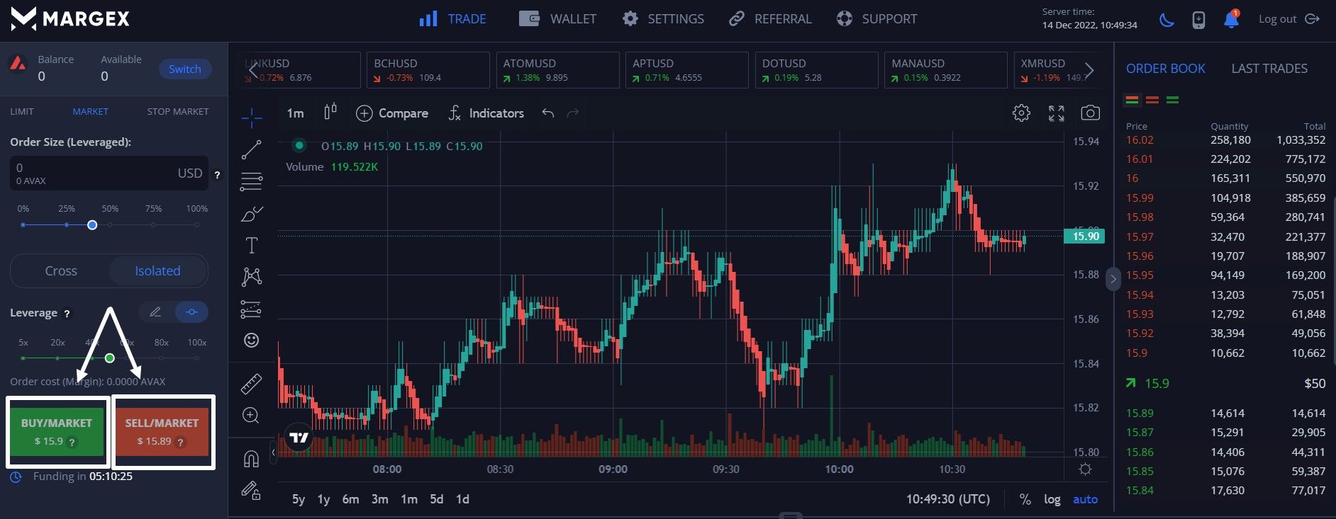 - Your trades will be displayed in the lower part of the Margex trading chart.