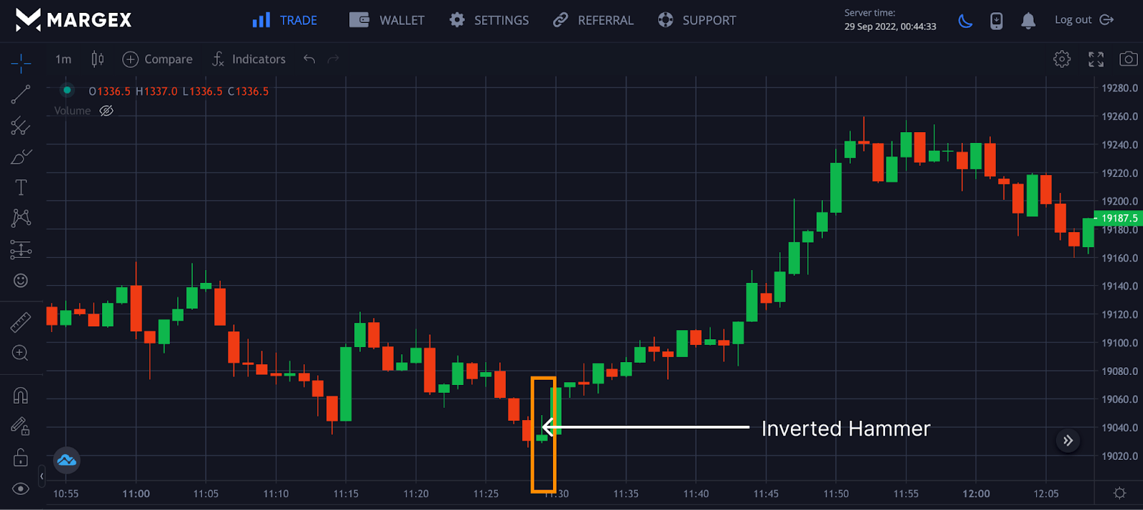 A Japanese candlestick pattern used to spot trend reversal is the inverted Hammer. The inverted Hammer usually appears at the end of a downtrend, giving the traders an indication that a trend reversal is imminent.