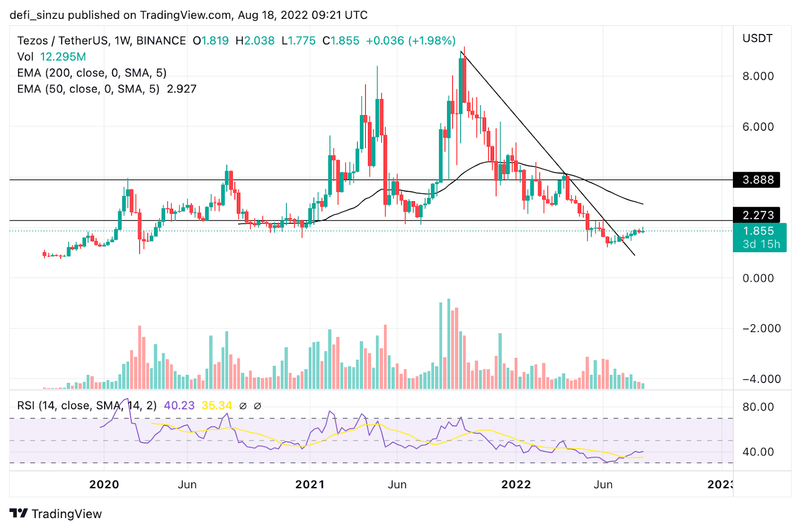 XTZ has performed well in the last bull run, with the price going to a high of $9.21, but XTZ’s price is down by over 75% from its all-time high to a region of $1.8. Cryptocurrencies are volatile; you need to do your due diligence or good research and don’t invest more than what you can afford to lose.