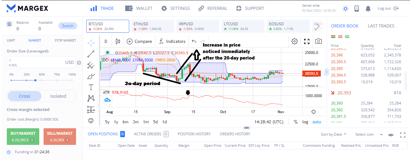 The chart above shows that the price of BTC went on an uptrend after 20 days. This shows that the turtle trading pattern can be used to make a profit.