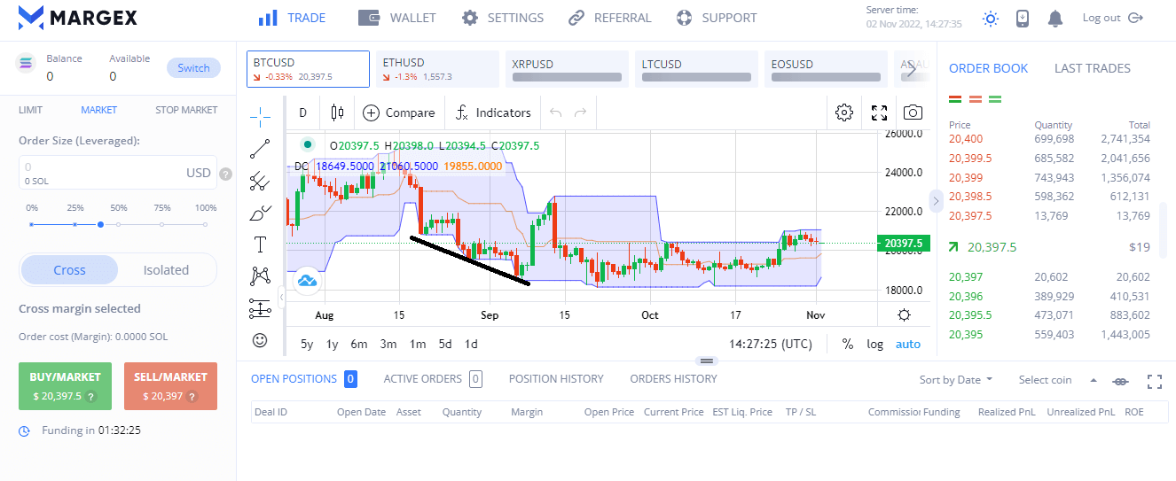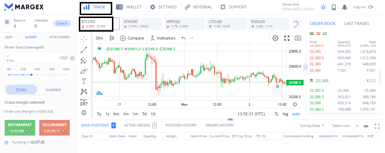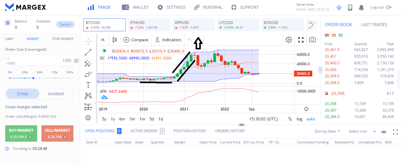 Click on trade and select the BTC/USD pair for this turtle trade test.