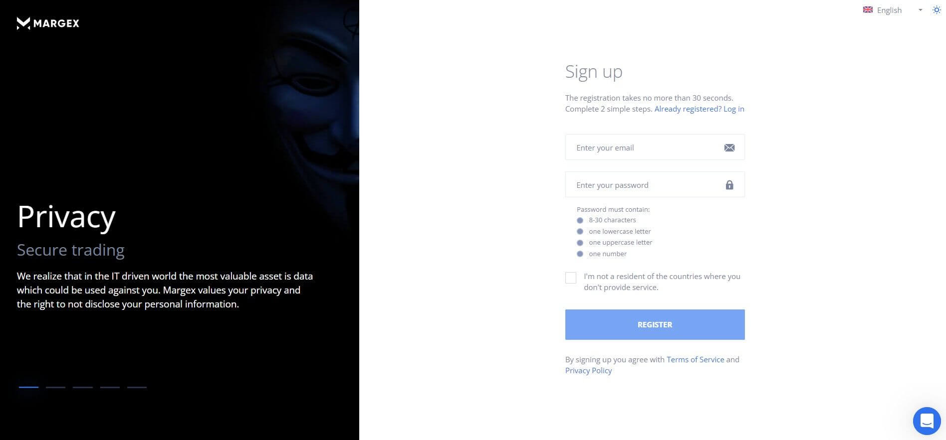 To enjoy the benefits of Margex, you must sign up for the platform before you can trade.