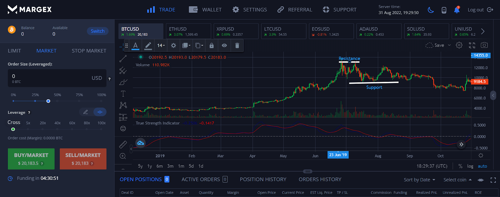 - The trader places a Take Profit order. Because this downtrend is turning bullish, traders should place a Take Profit order around the resistance level. The resistance level in this situation is about $20,404.