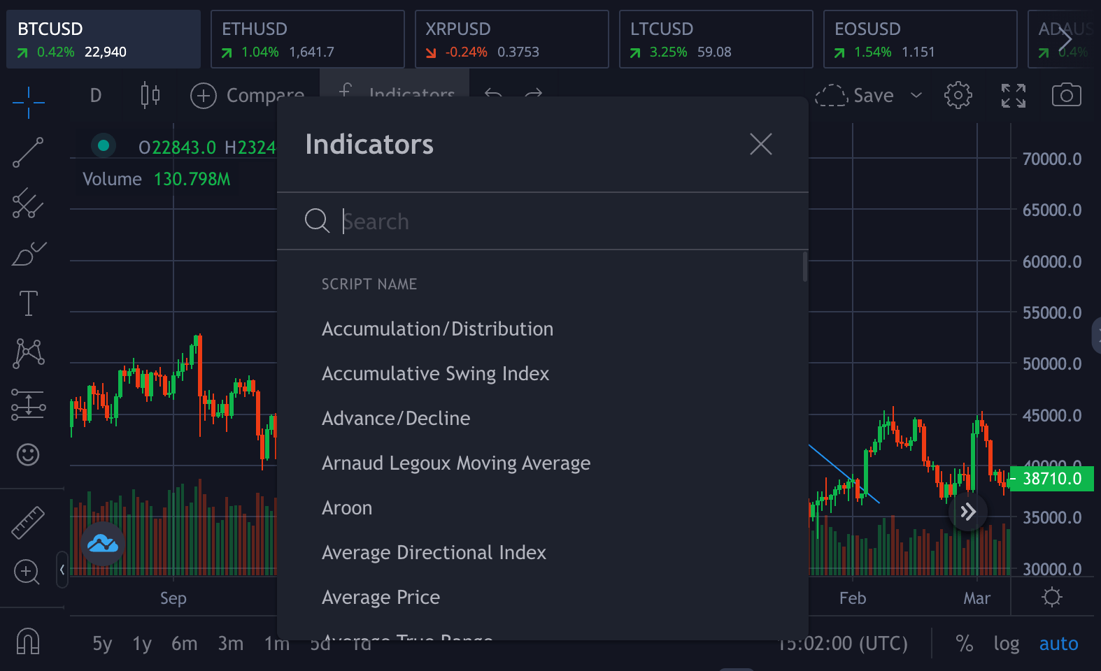 3. Candlestick – By clicking on the candles icon, you can switch from a line chart to a candle chart or vice versa.