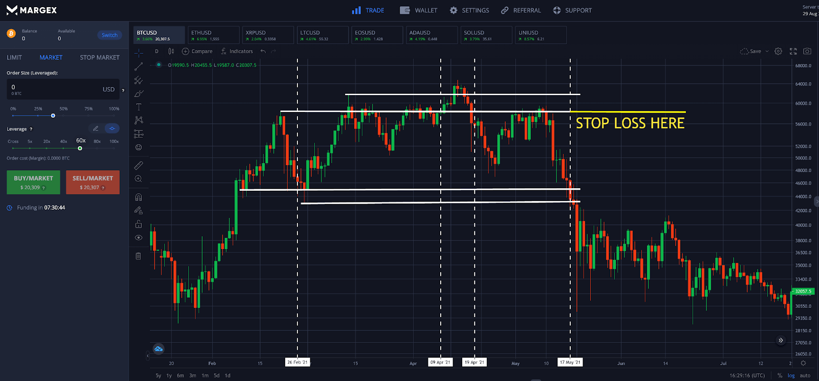 Step 3 – Place a stop loss order above the UTAD in the Wyckoff distribution pattern to prevent loss in case the market moves against your position and the Wyckoff distribution pattern ends up being invalid.
