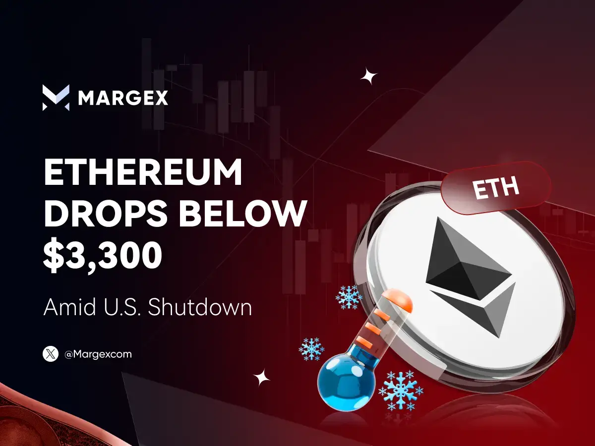 이더리움이 $3,300 아래로 하락, 미국은 역사상 최장기 셧다운 중